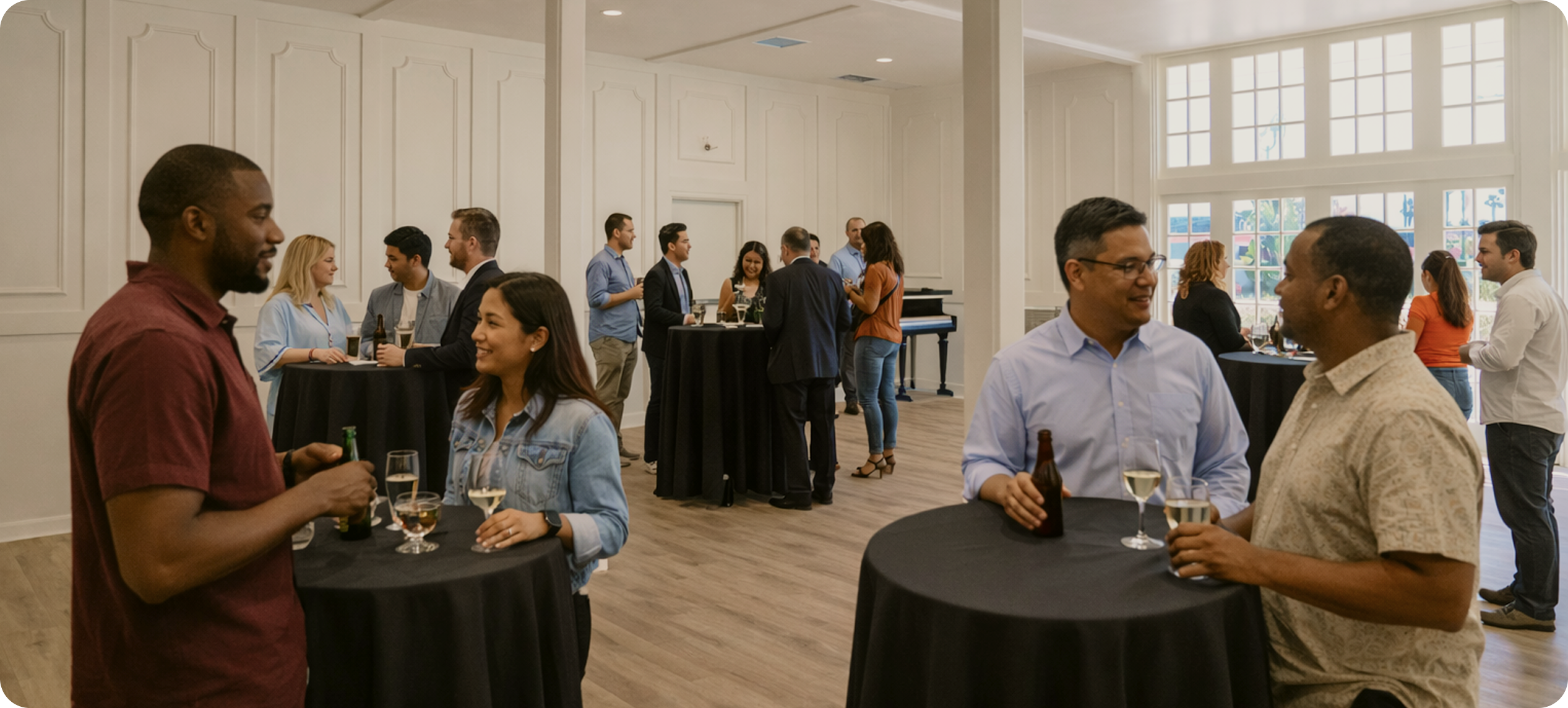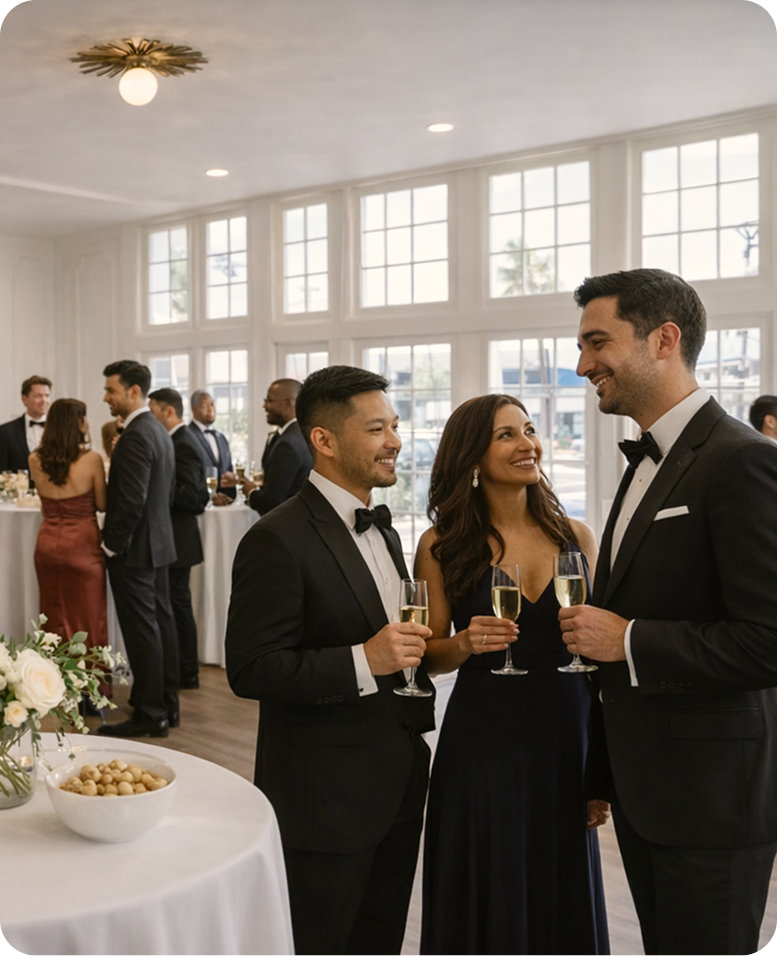 Designed to flex with your needs, the Founder’s Room is a multi-purpose space that adapts effortlessly throughout the day. It can serve as a private getting-ready room before an event, then transition into a boardroom, conference room, or small meeting space.