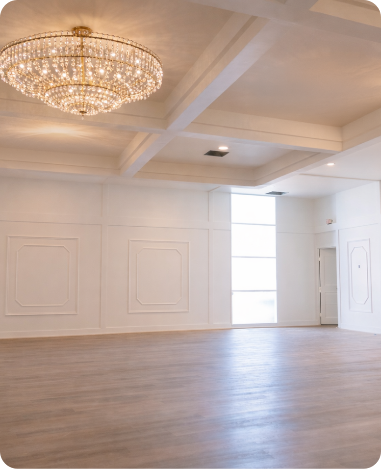 The Uptown Ballroom is an expansive indoor event space ready to transform into any atmosphere. With crisp white walls, rich wood accents, elevated stage, and room for one more, this space is designed to adapt with ease and seamlessly scale for any celebration.