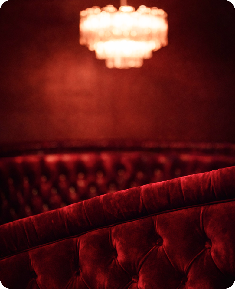 Warm, intimate, and undeniably chic, the Finery Bar offers a lively, inviting space for cocktails and conversation, flowing seamlessly into the Finery Lounge, a swanky adjoining space with plush banquettes, cozy red tones, and a relaxed conversational layout.