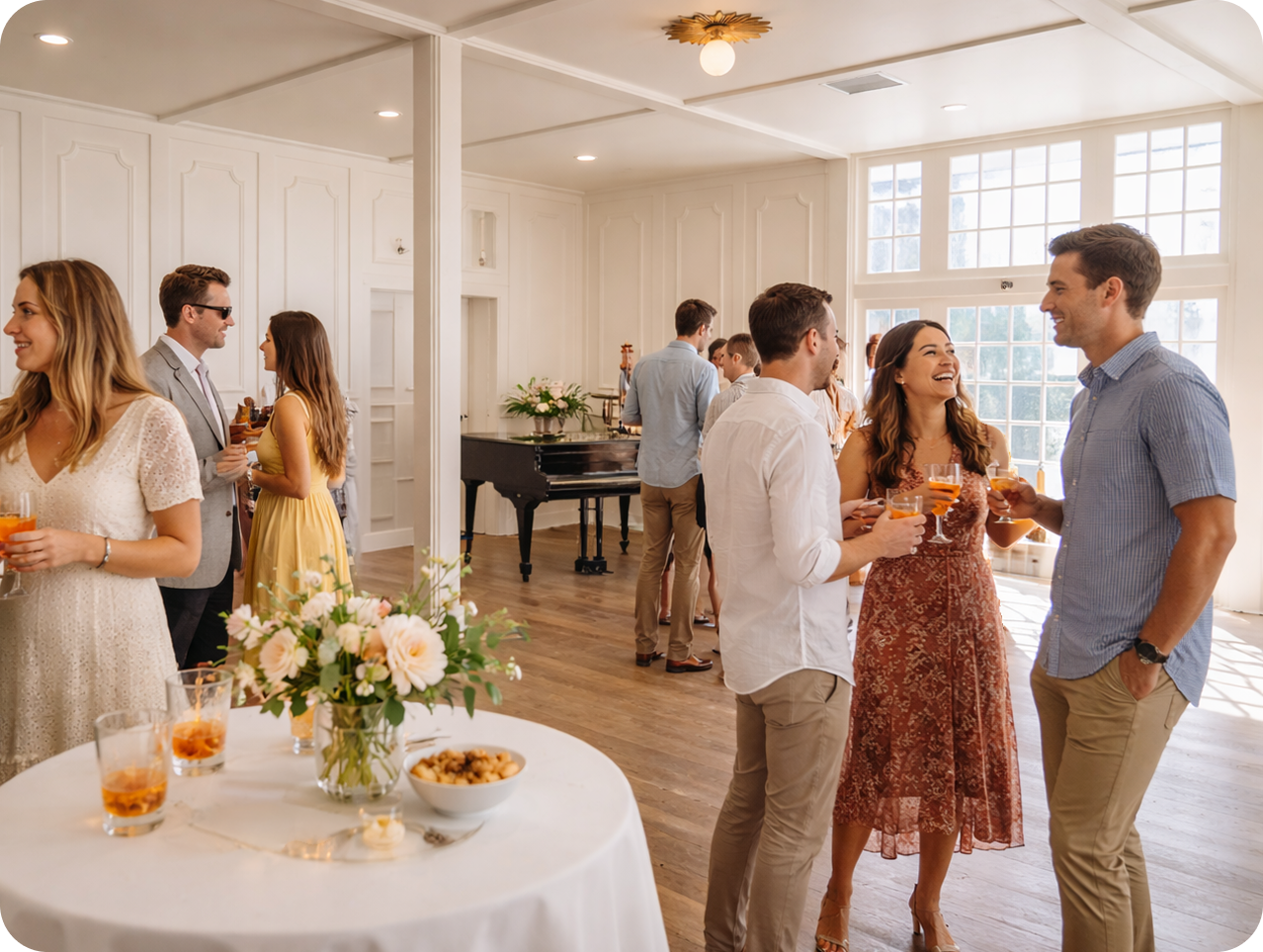 For any and every occasion. From cocktail receptions and celebrations to intimate showers and milestone moments, events unfold naturally in these spaces designed for gathering. With built-in character and easy flow, every celebration feels relaxed, intentional, and best enjoyed in good company.